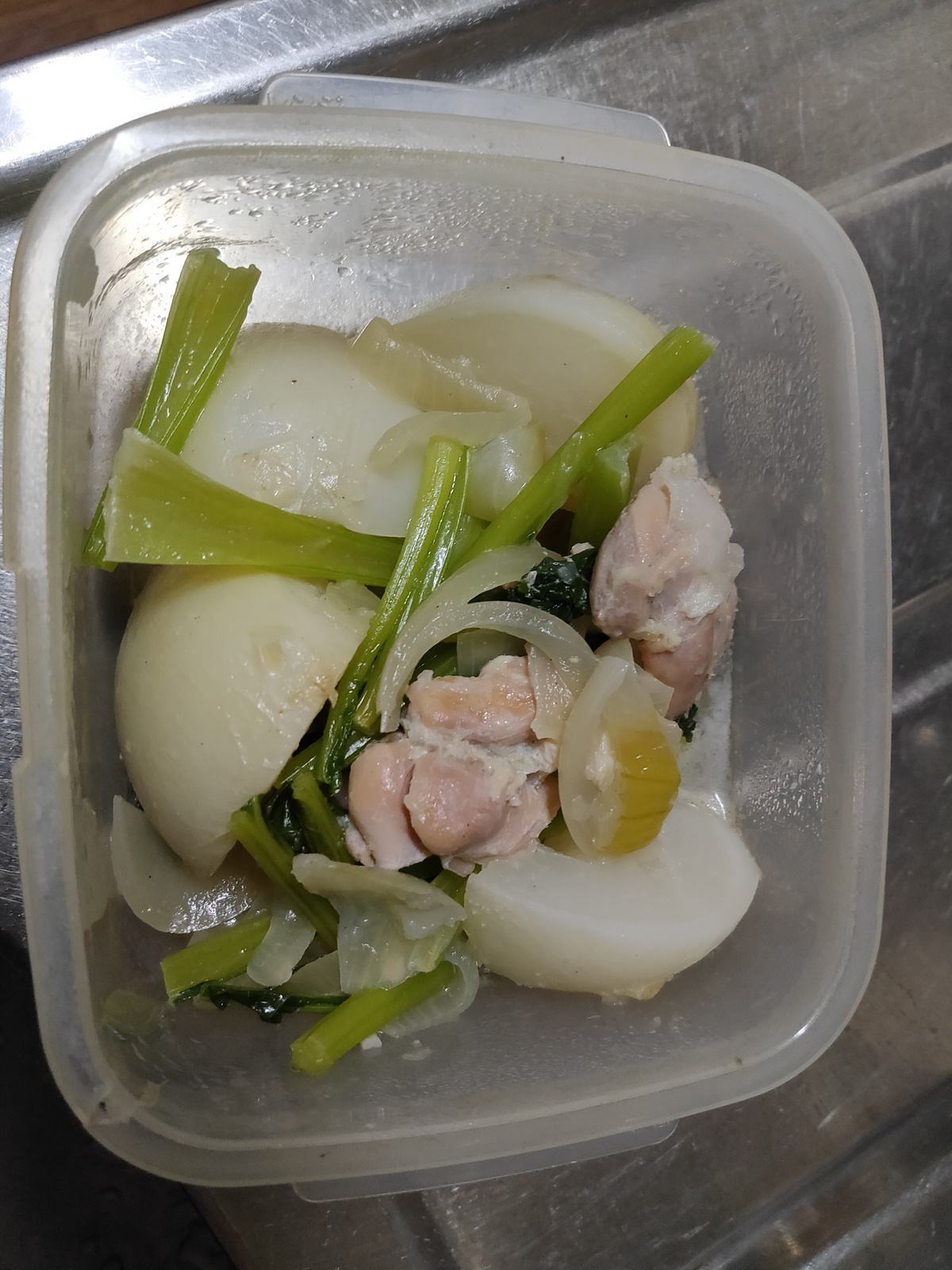 鶏とかぶの中華蒸し煮 コメントする / By nor / 2022年12月26日 鶏もも肉の賞味期限が迫っていたので、かぶ買ってきて、煮物。 どちらも柔らかくてウマ。 二人とも、あまり食欲がないのに作りすぎた…